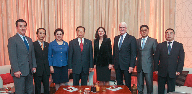 5月8日晚,集團張學武董事長、姜巖總經理在北京出席「中國迪拜周」歡迎晚會,并與此次活動發(fā)起方、迪拜酋長戰(zhàn)略咨詢顧問——獵鷹國際CEO等迪拜有關機構公司代表就進一步合作舉行會談。