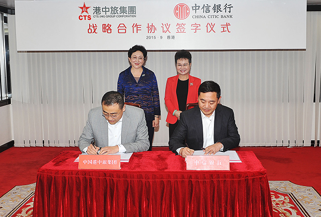9月22日,姜巖總經(jīng)理在集團會見了中信集團副總經(jīng)理兼中信銀行行長李慶萍一行,雙方就港中旅集團與中信集團及中信銀行深化合作進行會談,并舉行《戰(zhàn)略合作協(xié)議》簽字儀式。
