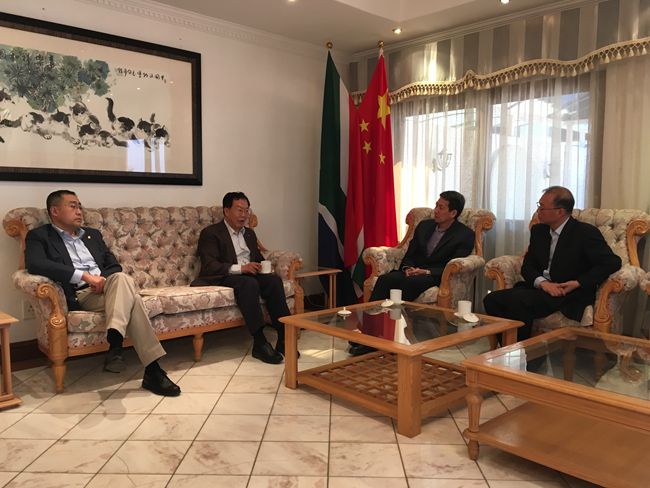 張學武董事長現(xiàn)場參觀了簽證中心服務大廳,與簽證中心管理團隊及一綫員工進行交流,瞭解簽證中心運作幷要求簽證中心在工作中要「講政治、重安全、提服務」,要充分展現(xiàn)港中旅企業(yè)的良好面貌。在南非期間,張學武董事長還拜會了中國駐約翰內(nèi)斯堡總領館阮平總領事、駐德班總領館王建州總領事,感謝領館對簽證中心的支持。