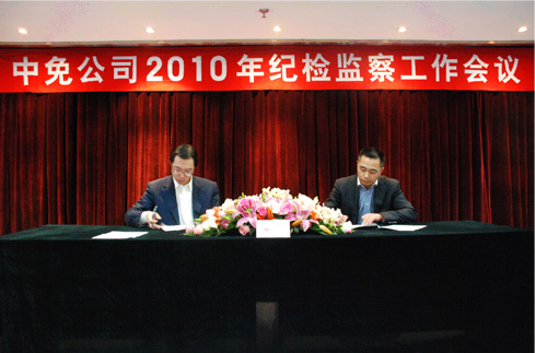 本次會議的主題是深入貫徹中紀委十七屆五次全會、國資委和國旅集團2010年紀檢監(jiān)察工作會議精神,總結公司2009年黨風建設和反腐倡廉工作,提出2010年工作要求,由公司黨委書記盧路分別與公司經(jīng)營班子成員和部門以上負責人、在京子公司主要負責人簽訂2010年《廉潔從業(yè)責任書》。