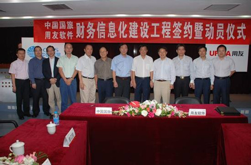 2010年8月27日下午,在中免集團10層多功能廳,中國國旅和用友公司舉行了‘財務(wù)信息化建設(shè)工程簽約暨動員儀式’,國旅股份總裁張建華先生和用友公司總裁王文京共同簽署了‘股份公司財務(wù)信息化項目’的主合同,中免集團總經(jīng)理盧路先生與用友公司高級副總裁吳健先生共同簽署了‘中免集團財務(wù)系統(tǒng)項目’的子合同,合同的簽署,標(biāo)志著中免集團‘總部系統(tǒng)項目’建設(shè)工作正式啟動并進入實施階段。
