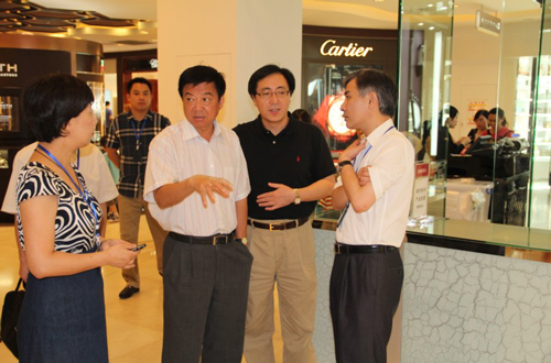 8月11日下午,國旅集團(tuán)有限公司董事、黨委書記兼國旅股份公司總裁張建華,國旅股份公司副總裁、中免集團(tuán)董事長彭輝對(duì)中免集團(tuán)三亞免稅店進(jìn)行了視察。中免集團(tuán)副總裁兼三亞免稅店總經(jīng)理王軒,三亞免稅店副總經(jīng)理劉靜、三亞免稅店副總經(jīng)理管武及三亞免稅店相關(guān)部門負(fù)責(zé)人陪同視察。