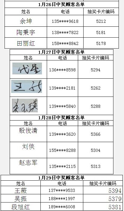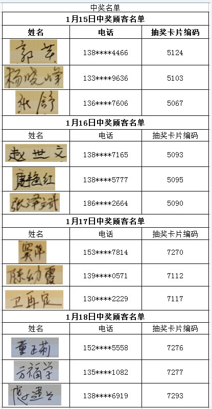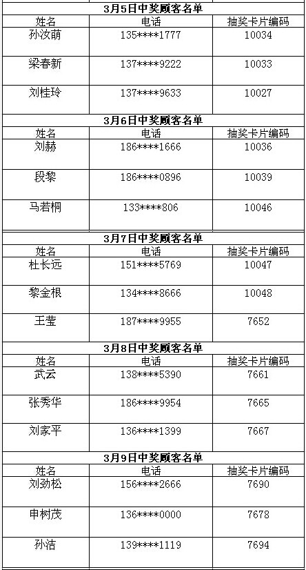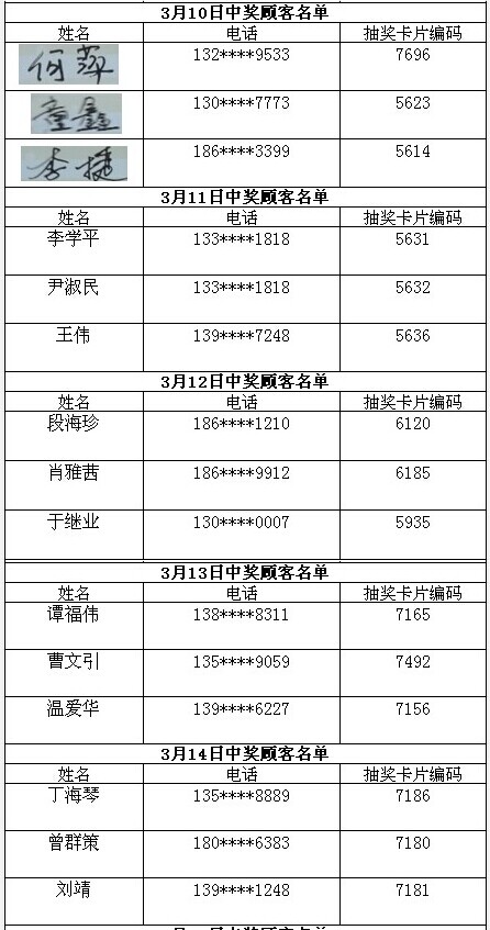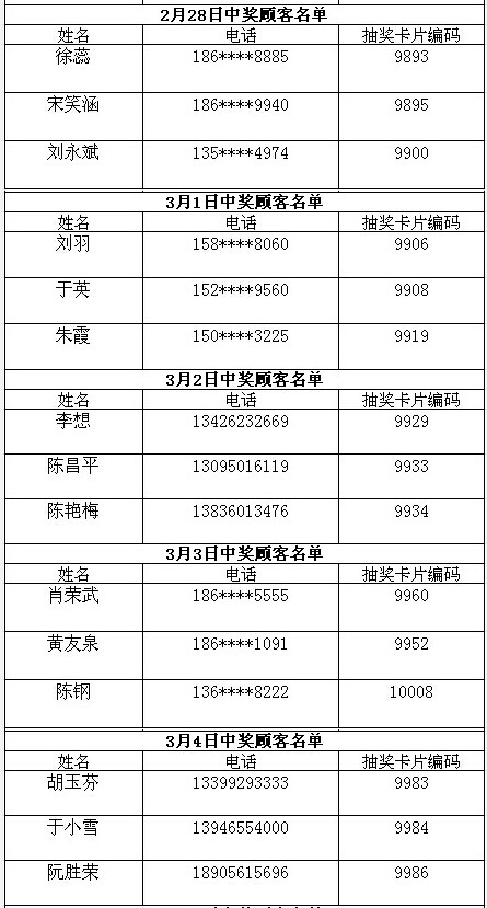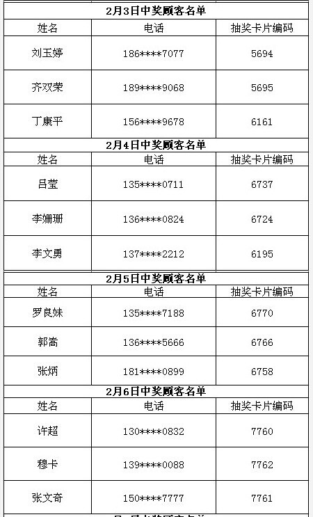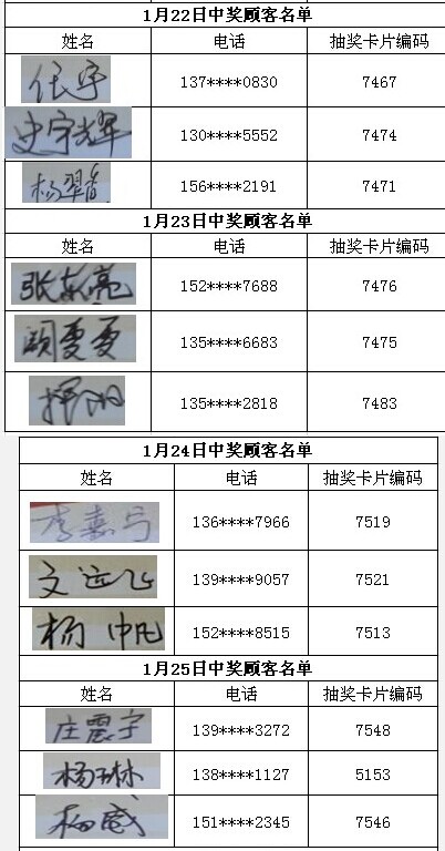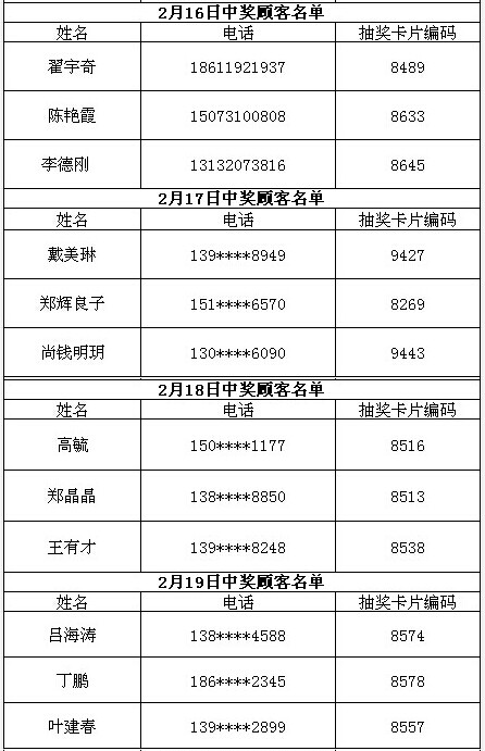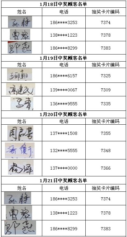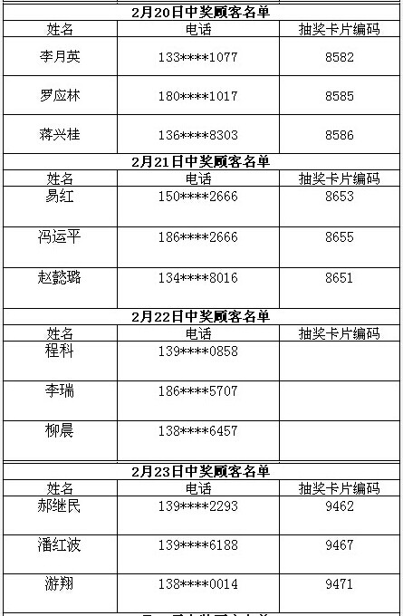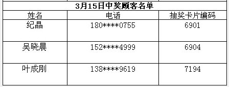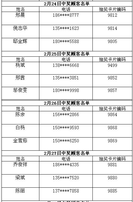 每日中獎(jiǎng)名單公布如下: