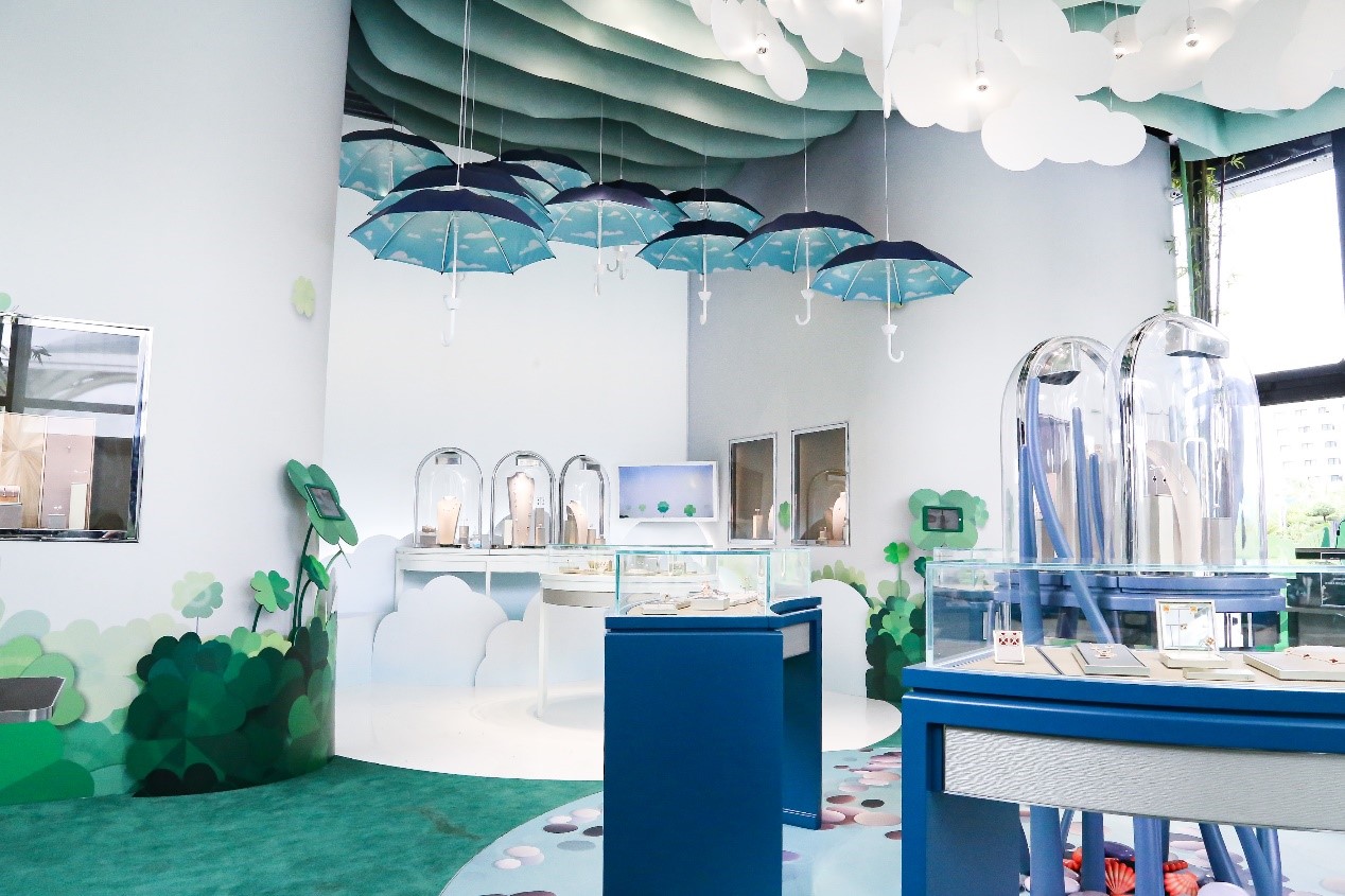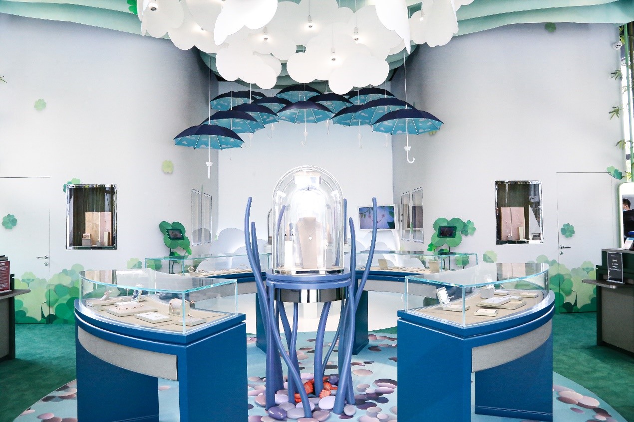 Van Cleef & Arpels梵克雅寶“Alhambra幸運(yùn)花園”免稅限時(shí)精品店位于三亞國(guó)際免稅城后廣場(chǎng)。世家要員雅克·雅寶Jacques Arpels常言道:“心懷幸運(yùn)之愿,方能成為幸運(yùn)之士?!毙疫\(yùn)是梵克雅寶一直以來十分珍視的價(jià)值,更是其創(chuàng)意靈感的泉源之一,因此限時(shí)精品店內(nèi)部設(shè)計(jì)以世家標(biāo)志性四葉幸運(yùn)圖案為主題,以延續(xù)這珍貴價(jià)值。進(jìn)店后,首先映入訪客眼簾的將是Burcu & Geoffrey 這對(duì)法國(guó)和土耳其的導(dǎo)演拍檔為Alhambra 特別創(chuàng)作的四葉圖騰造型蝴蝶沿途散播幸運(yùn)的種子,帶領(lǐng)游客穿梭在幸運(yùn)花園中,引領(lǐng)大眾一同探索夢(mèng)幻迷人的Alhambra 幸運(yùn)花園, 為游客營(yíng)造出一種舒適愉快的珠寶欣賞空間。