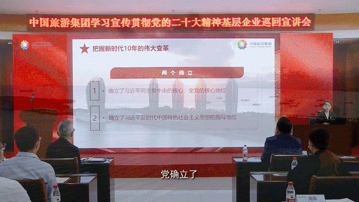 2023年,為引導(dǎo)廣大干部職工進(jìn)一步把思想統(tǒng)一到黨的二十大精神上來,把力量凝聚到黨的二十大確定的各項任務(wù)上來,三亞店黨委積極創(chuàng)新形式,通過舉辦基層理論宣講會、分享交流會、線上學(xué)習(xí)培訓(xùn)、先進(jìn)典型宣傳、國企開放日等形式,從身邊人講身邊事著手,利用cdf免稅先鋒、黨建文化長廊、社會主流媒體等全媒體矩陣平臺,大力弘揚(yáng)社會主旋律,提振員工精氣神,展現(xiàn)中央企業(yè)大國頂梁柱的良好社會形象。