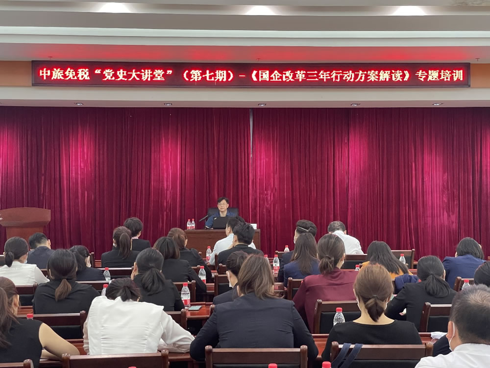 彭建國教授以“抓緊落實三年行動方案 推動國企改革走深走實”為題進行全方位解讀,重點講述了國有企業(yè)改革的重大意義、目標方向、豐富內涵和著力點,深刻解答了國有企業(yè)“為什么改革”“改革什么”“怎么改革”等一系列理論和實踐問題,為中免實施國企改革三年行動提供了及時有力的指導和借鑒。