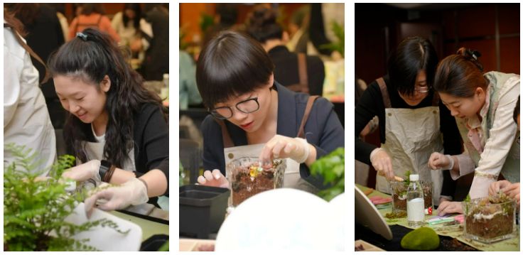 其中,微景觀藝術(shù)沙龍全天分為四場,公司總部200余名女性職工積極參與?;顒悠陂g,學員在老師的帶領(lǐng)下,通過聽、聞、看、觸,打開并提升自我的感知力,在與自然共處的同時,擁抱自己,接納自己。
