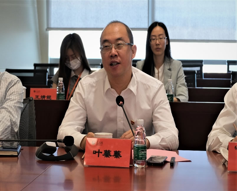 參觀結(jié)束后,雙方進(jìn)行了座談交流。人民網(wǎng)黨委書記、董事長、總裁葉蓁蓁首先介紹了人民網(wǎng)的主責(zé)業(yè)務(wù)。他說,人民網(wǎng)始終履行黨網(wǎng)職責(zé),積極落實習(xí)總書記關(guān)于推動媒體融合發(fā)展提出的全程、全息、全員、全效的“四全”媒體論述。近年來,人民網(wǎng)一直是媒體融合、轉(zhuǎn)型發(fā)展的引領(lǐng)者。人民網(wǎng)深研內(nèi)容科技,聚焦一個內(nèi)容主業(yè),在內(nèi)容原創(chuàng)、內(nèi)容運營、內(nèi)容風(fēng)控、內(nèi)容聚合分發(fā)四個內(nèi)容業(yè)務(wù)上全面發(fā)力,在內(nèi)容產(chǎn)業(yè)新的社會化分工的關(guān)鍵“生態(tài)位”發(fā)揮了引領(lǐng)、連接、標(biāo)準(zhǔn)制定等關(guān)鍵作用,探索實現(xiàn)從“黨管媒體”走向“黨管數(shù)據(jù)”,不斷鞏固中央重點新聞網(wǎng)站“龍頭”地位,逐步發(fā)展成為內(nèi)容科技領(lǐng)軍企業(yè)。