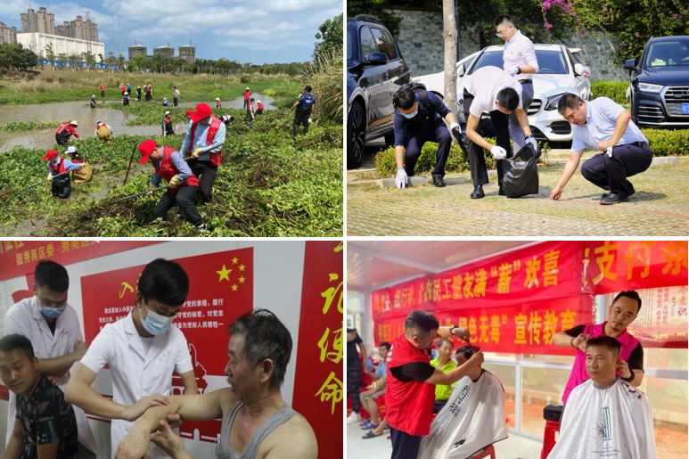 中免(??冢┩顿Y公司黨支部聚焦服務(wù)工程建設(shè)、豐富企業(yè)文化、踐行社會(huì)責(zé)任等方面把實(shí)事辦實(shí)辦好。為海口國(guó)際免稅城項(xiàng)目員工“送清涼”,購(gòu)置了防暑防曬物資,備好冰鎮(zhèn)綠豆湯,不定期推出“驚喜菜”。精心打造“黨史文化墻”,設(shè)立“圖書(shū)角”,開(kāi)展“微課堂”讀書(shū)活動(dòng),為員工訂閱報(bào)紙期刊,開(kāi)展職工趣味運(yùn)動(dòng)會(huì)、友誼籃球賽,全面更新公司形象展示標(biāo)識(shí)和宣傳欄,設(shè)置新人榜,不斷打造企業(yè)文化新亮點(diǎn)。黨支部聯(lián)合當(dāng)?shù)毓?huì)、共青團(tuán)等機(jī)構(gòu)共同開(kāi)展環(huán)保志愿活動(dòng)和公益普法活動(dòng),提供免費(fèi)體檢、義剪服務(wù),以實(shí)際行動(dòng)關(guān)愛(ài)自貿(mào)港基層建設(shè)者,彰顯央企風(fēng)范。